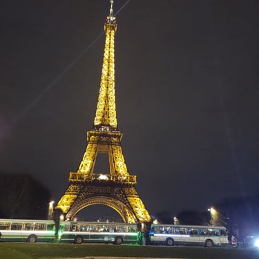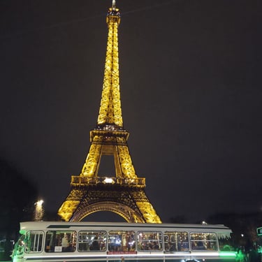 Moment fort de la soirée : une halte conviviale au pied de la Tour Eiffel, permettant à tous de profiter d’un instant chaleureux autour d’un vin chaud fait maison, accompagné d’autres boissons.